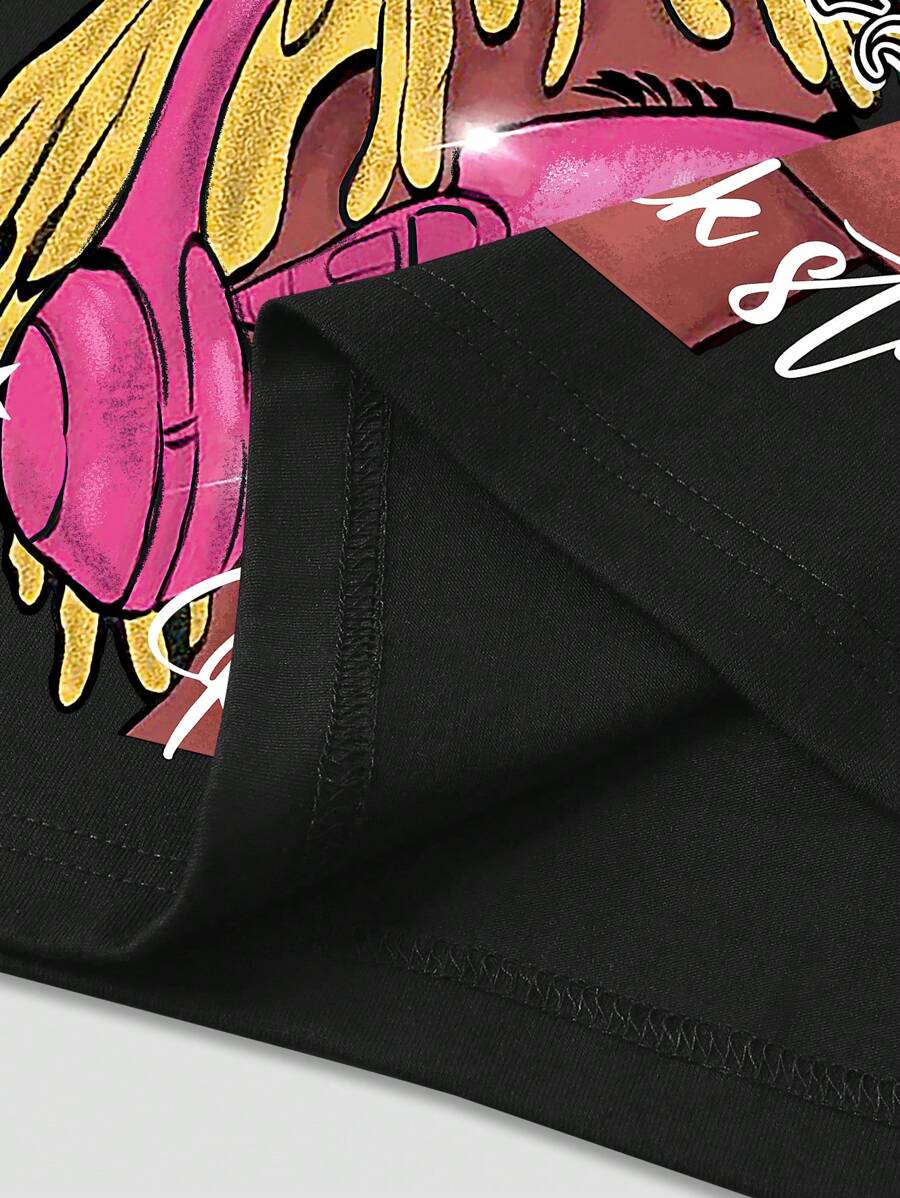 Street Life Men's Casual Hip Hop Character & Letter Print Short Sleeve T-Shirt