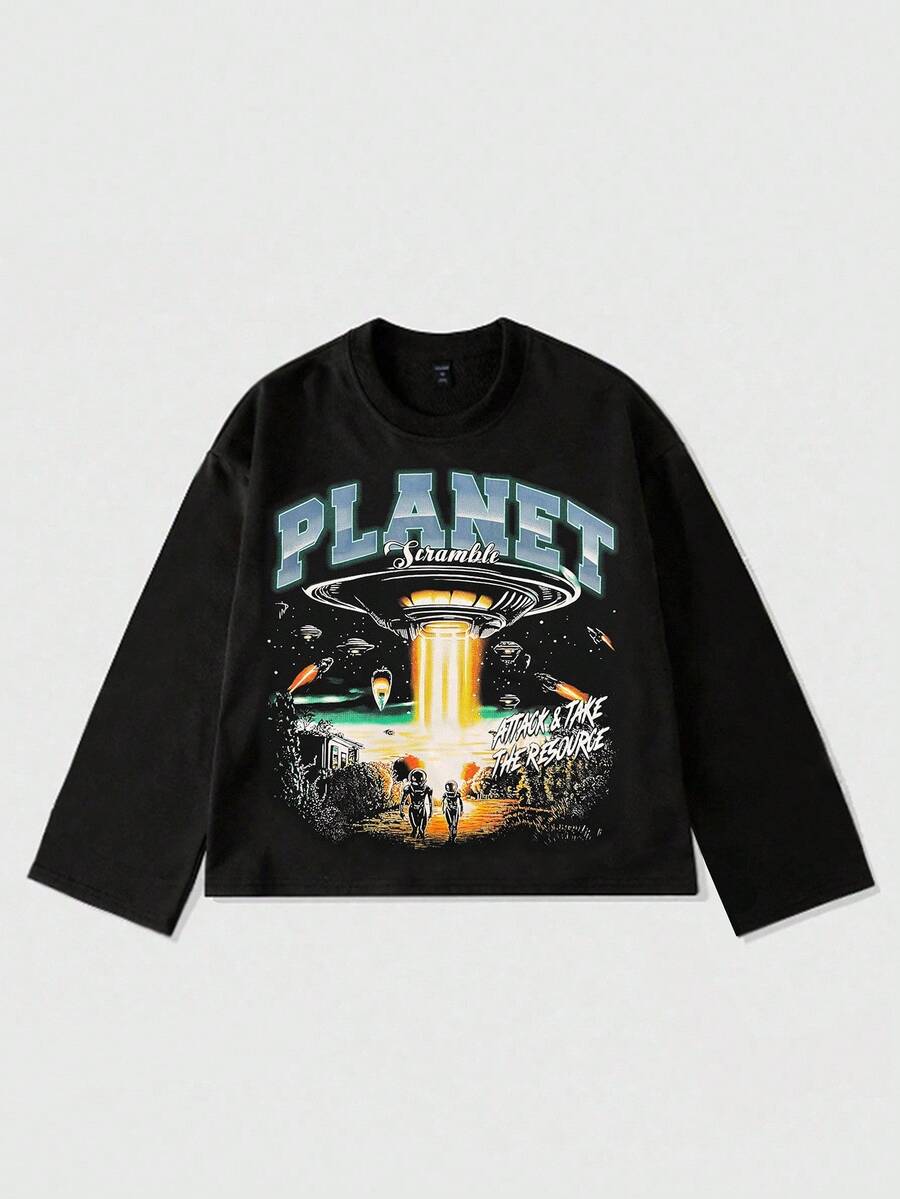 Street Life Men's Casual Letter Print Long Sleeve T-Shirt, Spring/Autumn, For Fall, 2000s Style