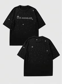 Street Life Men's Casual Letter Rhinestone Decor Short Sleeve T-Shirt, Spring/Summer