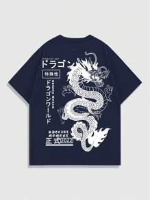Street Life Men's Casual Loose Dragon Print Short Sleeve T-Shirt