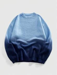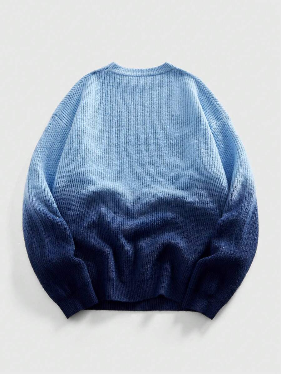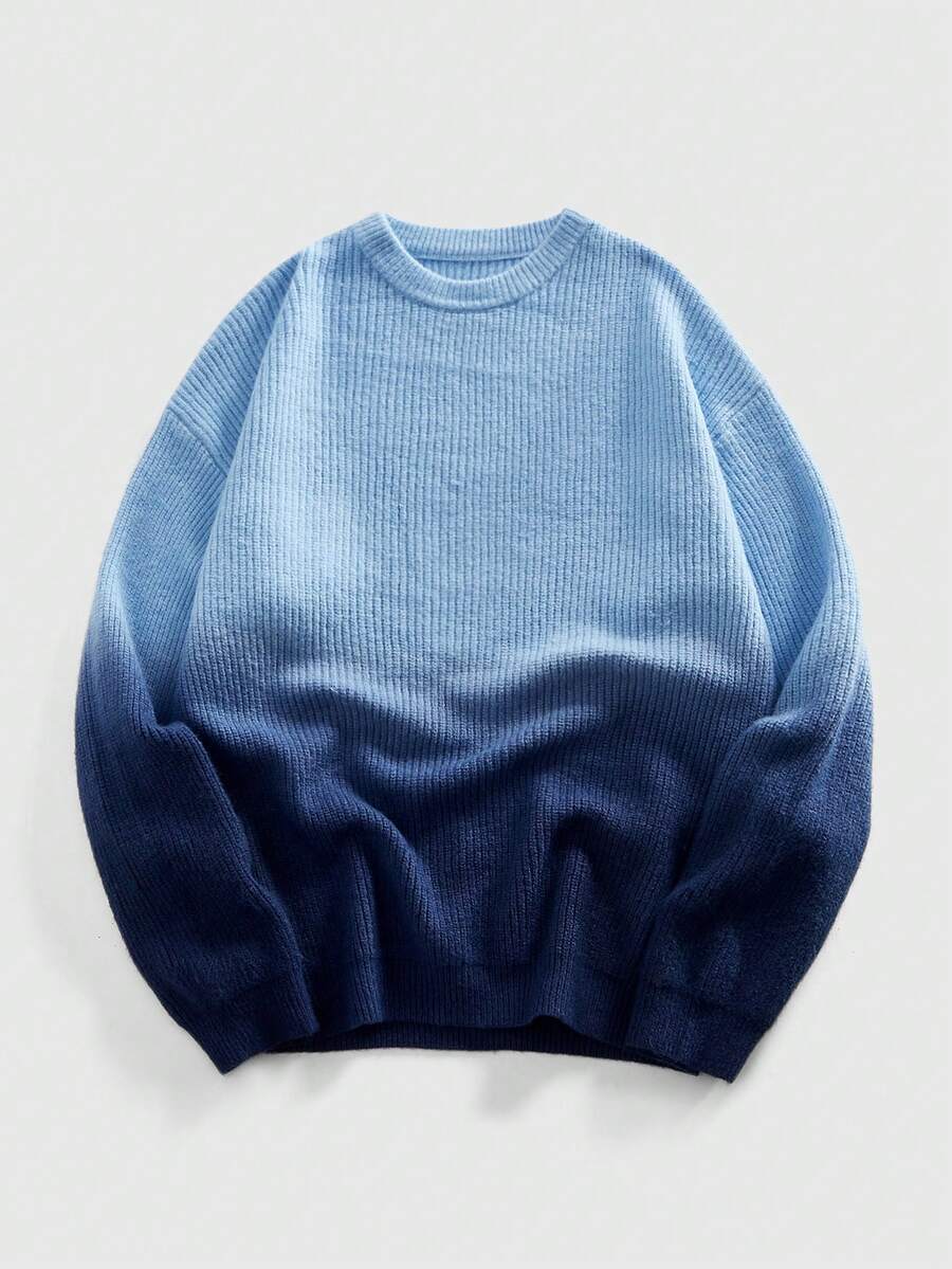 Street Life Men's Casual Loose Fit Gradient Blue Crew Neck Long Sleeve Sweater, Autumn/Winter