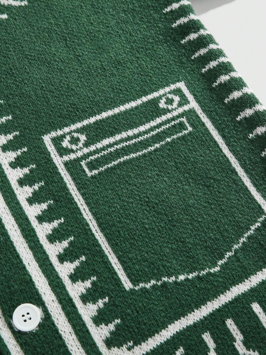Street Life Men's Casual Loose Fit Pocket Printed Long Sleeve Single-Breasted Cardigan, Autumn/Winter
