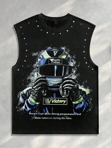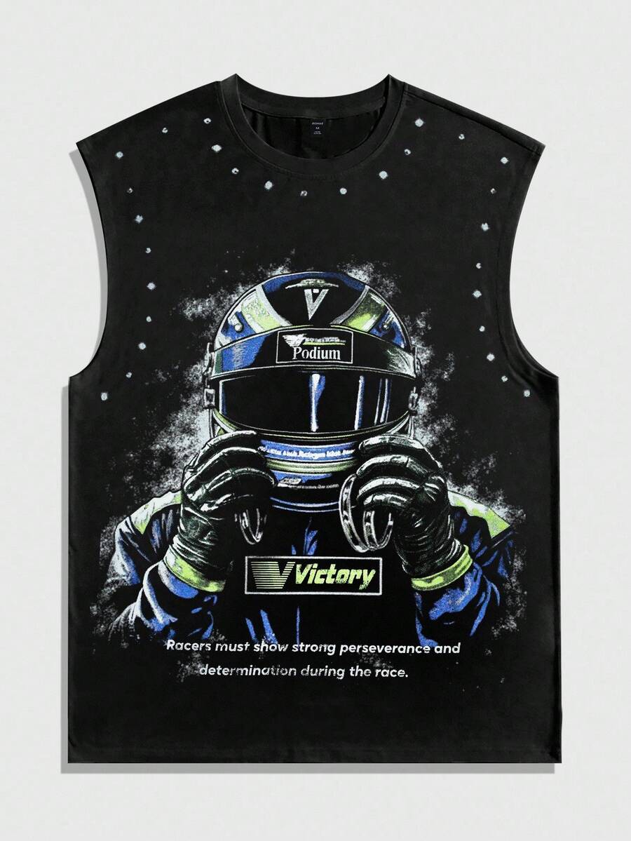 Street Life Men's Casual Loose Fit Racer Graphic Print Round Neck Tank Top, 2000s Style