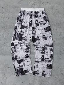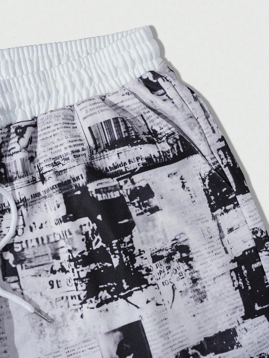 Street Life Men's Casual Newspaper Print Drawstring Waist Pocket Loose Sweatpants