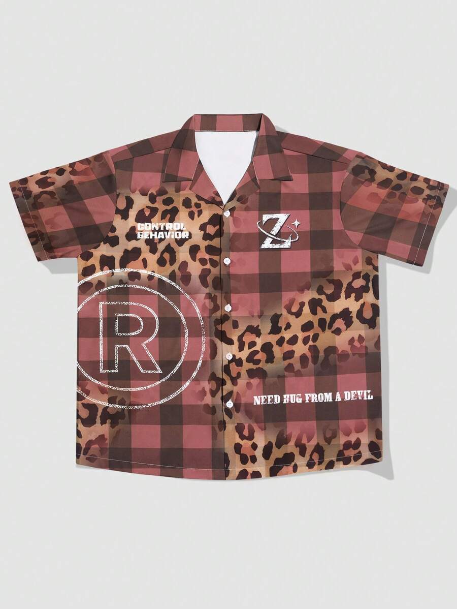 Street Life Men's Casual Plaid & Leopard Print Short Sleeve Shirt, Summer
