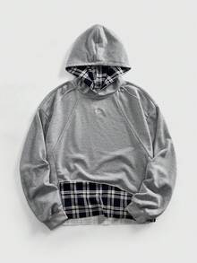 Street Life Men's Casual Plaid Patchwork Hoodie Sweatshirt, Autumn