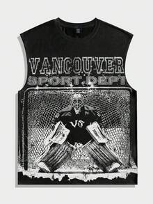 Street Life Men's Casual Portrait & Letter Graphic Round Neck Tank Top, Summer