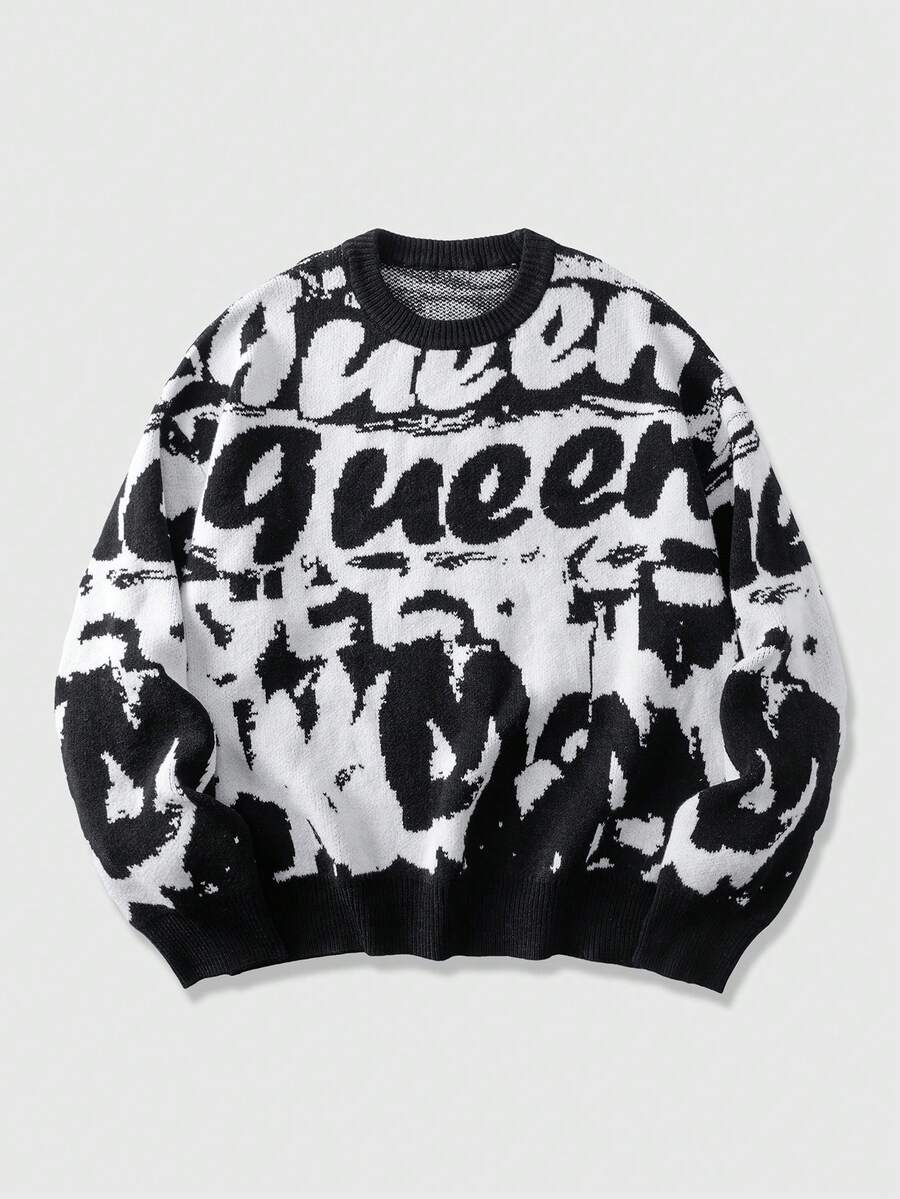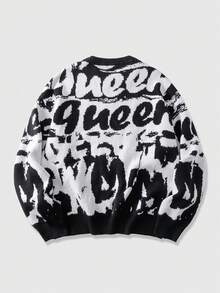 Street Life Men's Casual Queen Pattern Crew Neck Sweater