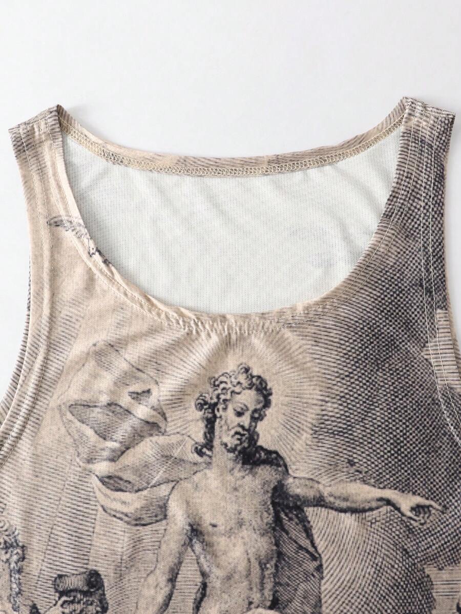 Street Life Men's Casual Religious Character Round Neck Loose Fit Figure Printed Tank Top, Summer