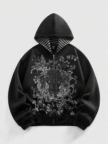 Street Life Men's Casual Retro Cross Print Hoodie Sweatshirt, Autumn/Winter