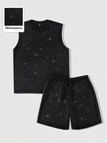 Street Life Men's Casual Sparkling Diamond Printed Round Neck Tank Top Set