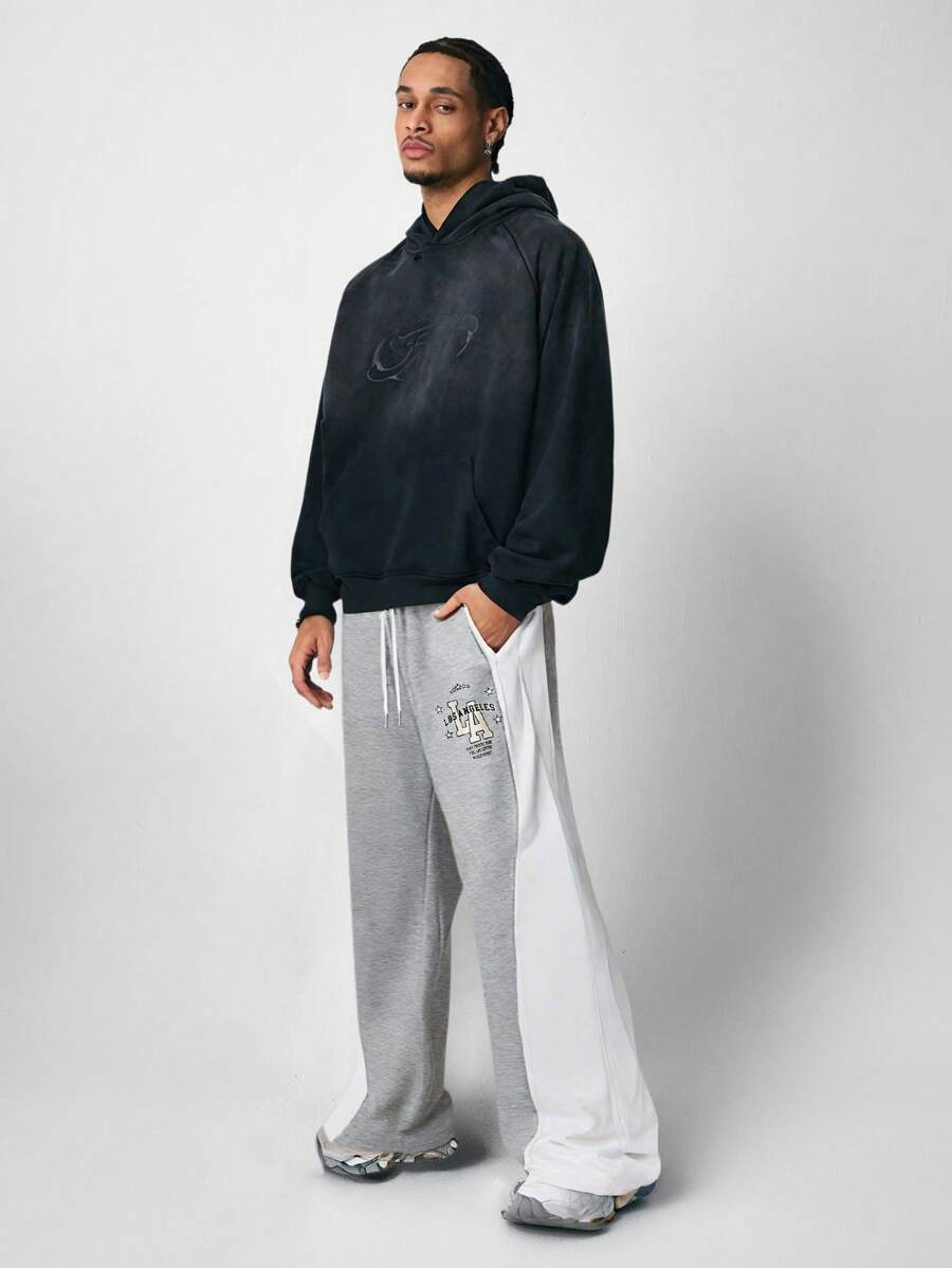 Street Life Men's Casual Sports Contrast Color Letter Print Drawstring Waist Sweatpants