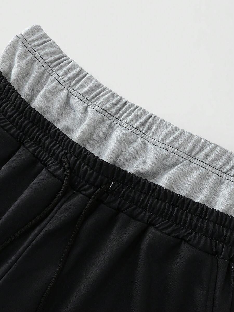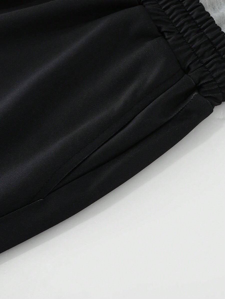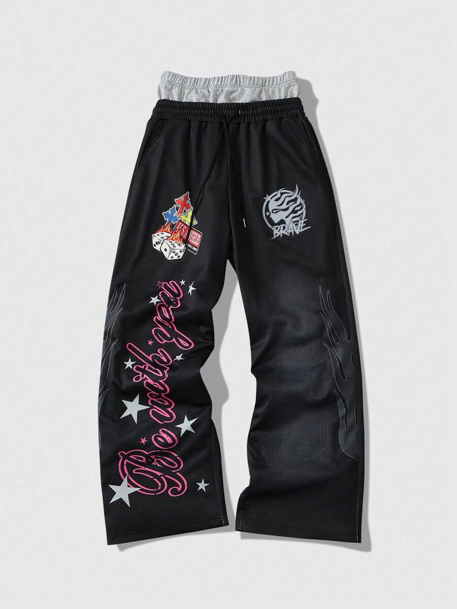 Street Life Men's Casual Street Style Patchwork Waistband, Letter & Cross Print, Loose Fit Wide Leg Sweatpants With Side Pockets