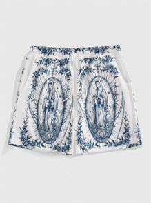 Street Life Men's Casual Virgin Mary Print Drawstring Waist Loose Shorts