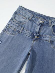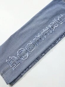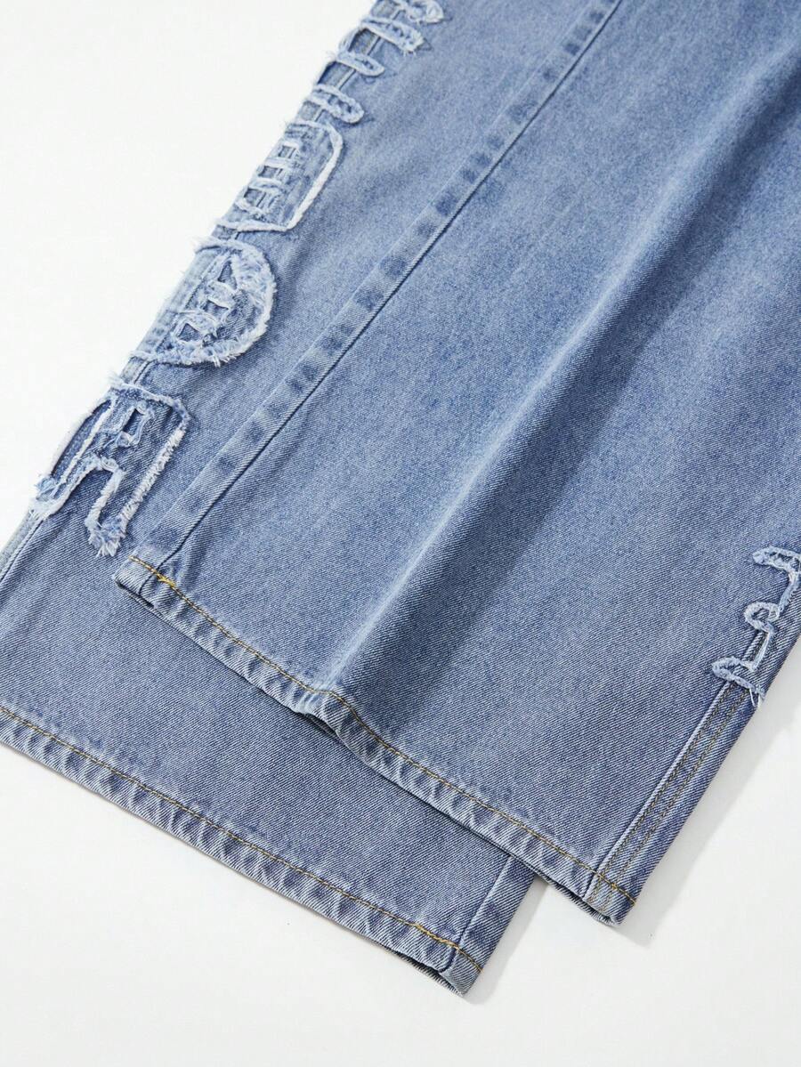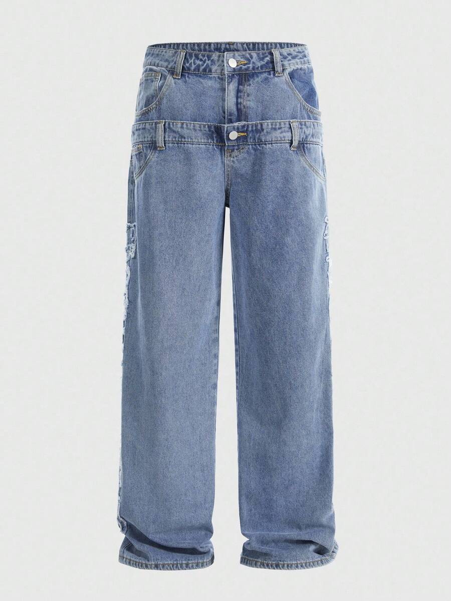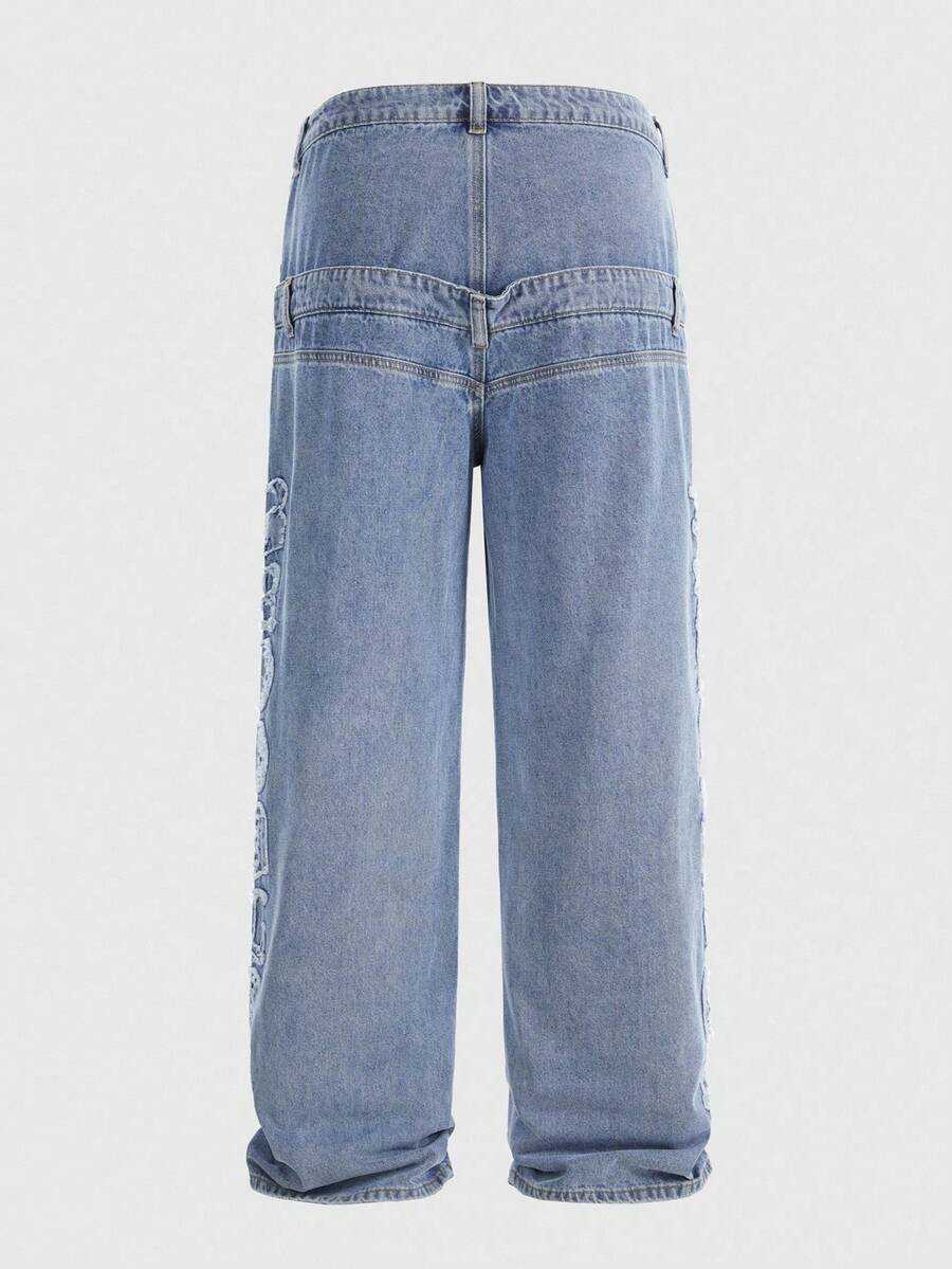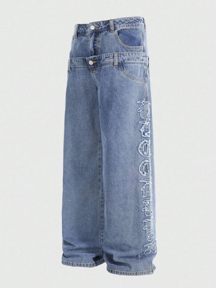 Street Life Men's Casual Washed Distressed Letter Dual Waistband Denim Jeans