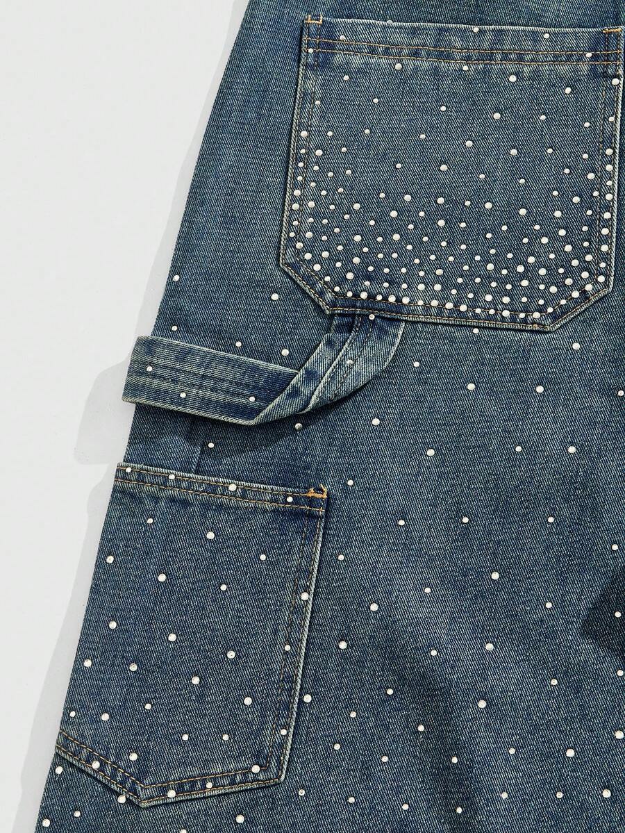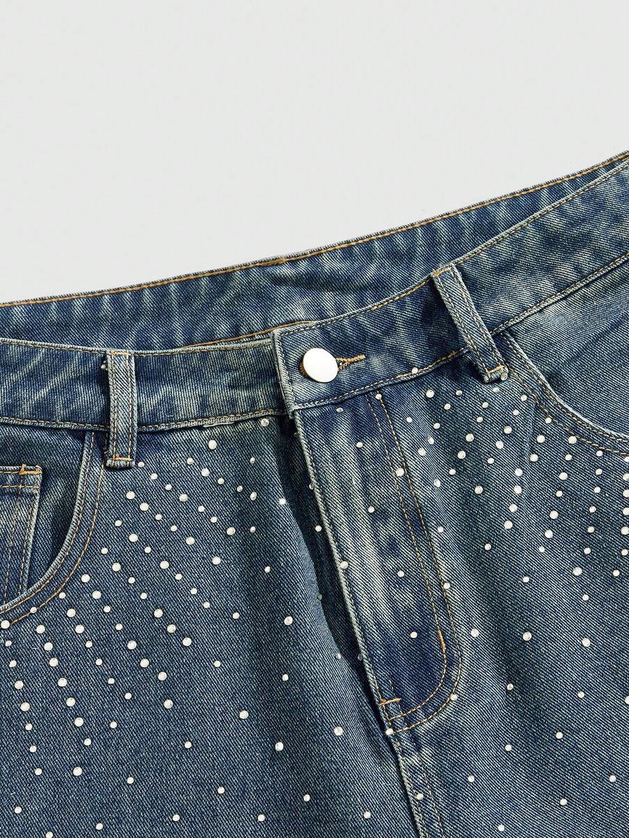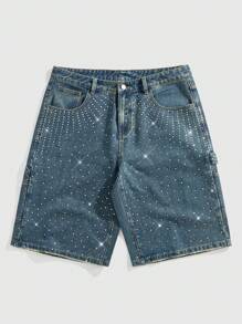 Street Life Men's Casual Washed Rhinestone Decorative Denim Shorts Jorts For Summer