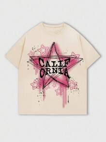 Street Life Men's Casual Watercolor Star Printed Short Sleeve T-Shirt, Suitable For Daily Wear In Spring And Summer, School
