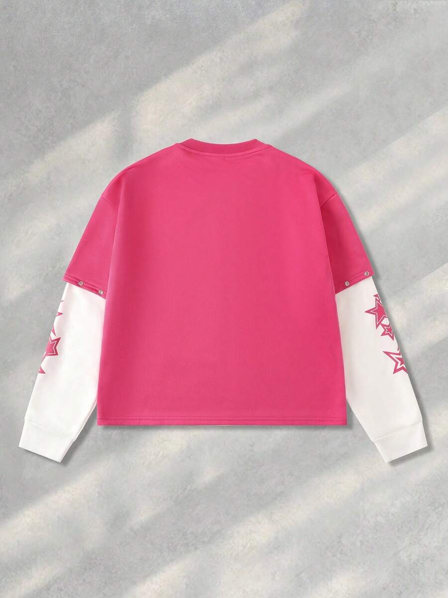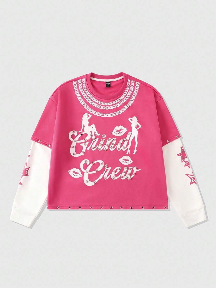 Street Life Men's Contrast Color Rivet Patchwork Long Sleeve T-Shirt, For Fall