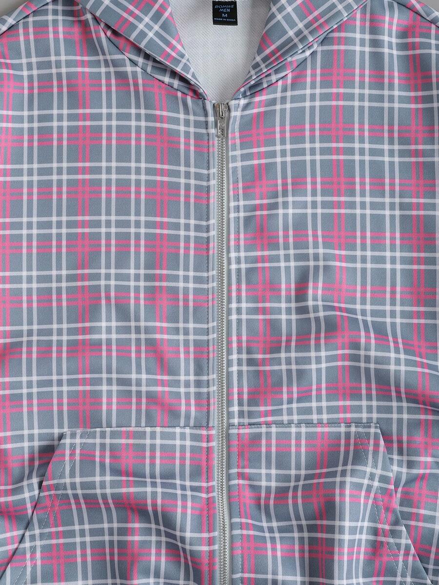 Street Life Men's Contrast Plaid Patchwork Zip-Up Hoodie
