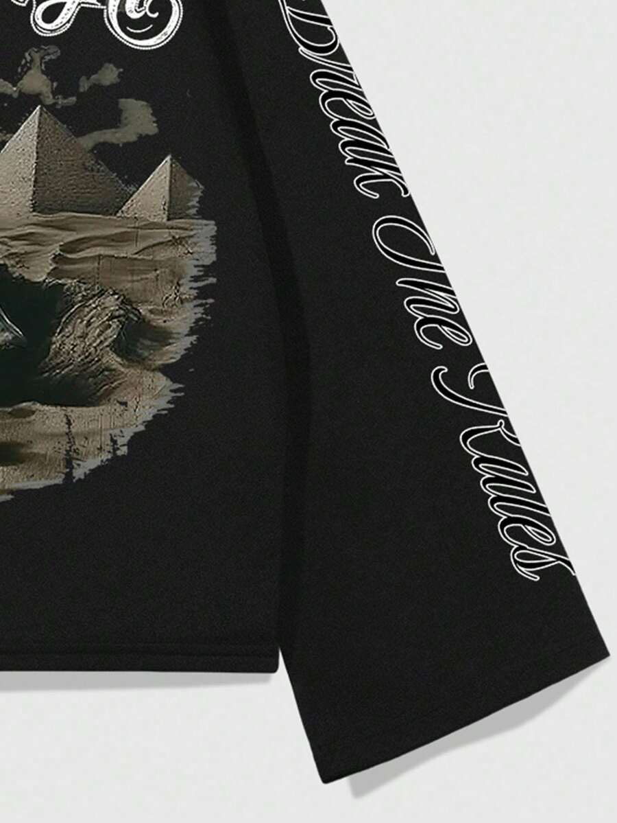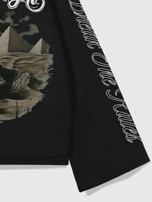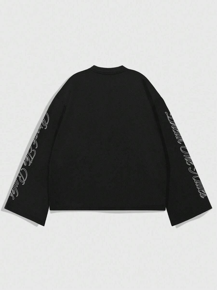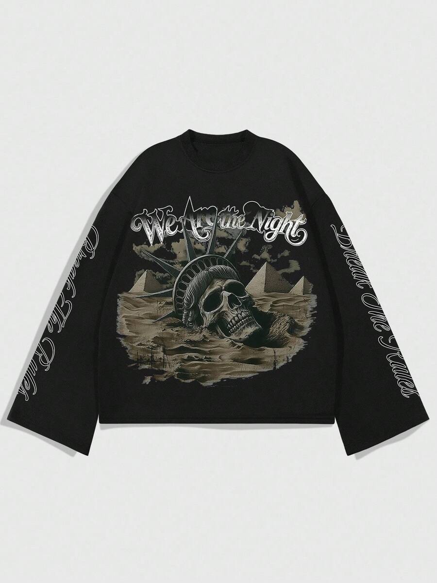 Street Life Men's Crew Neck Long Sleeve Casual Creative Skull Graphic Loose Fit T-Shirt
