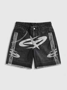 Street Life Men's Daily Casual Striped Print Denim Shorts
