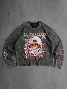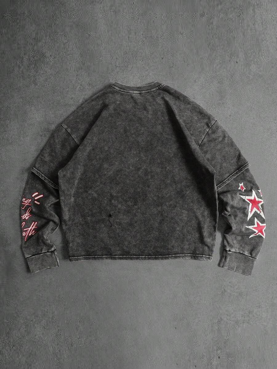 Street Life Men's Distressed Print Long Sleeve T-Shirt, Loose Fit