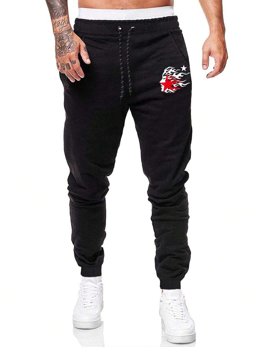 Street Life Men's Drawstring Waist Star Print Casual Sweatpants