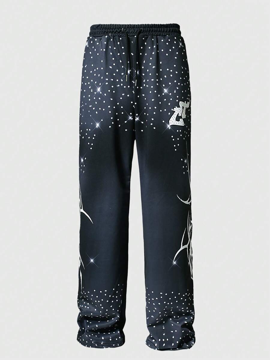 Street Life Men's Drawstring Waist Wide Leg Loose Casual Sweatpants With Rhinestone Design