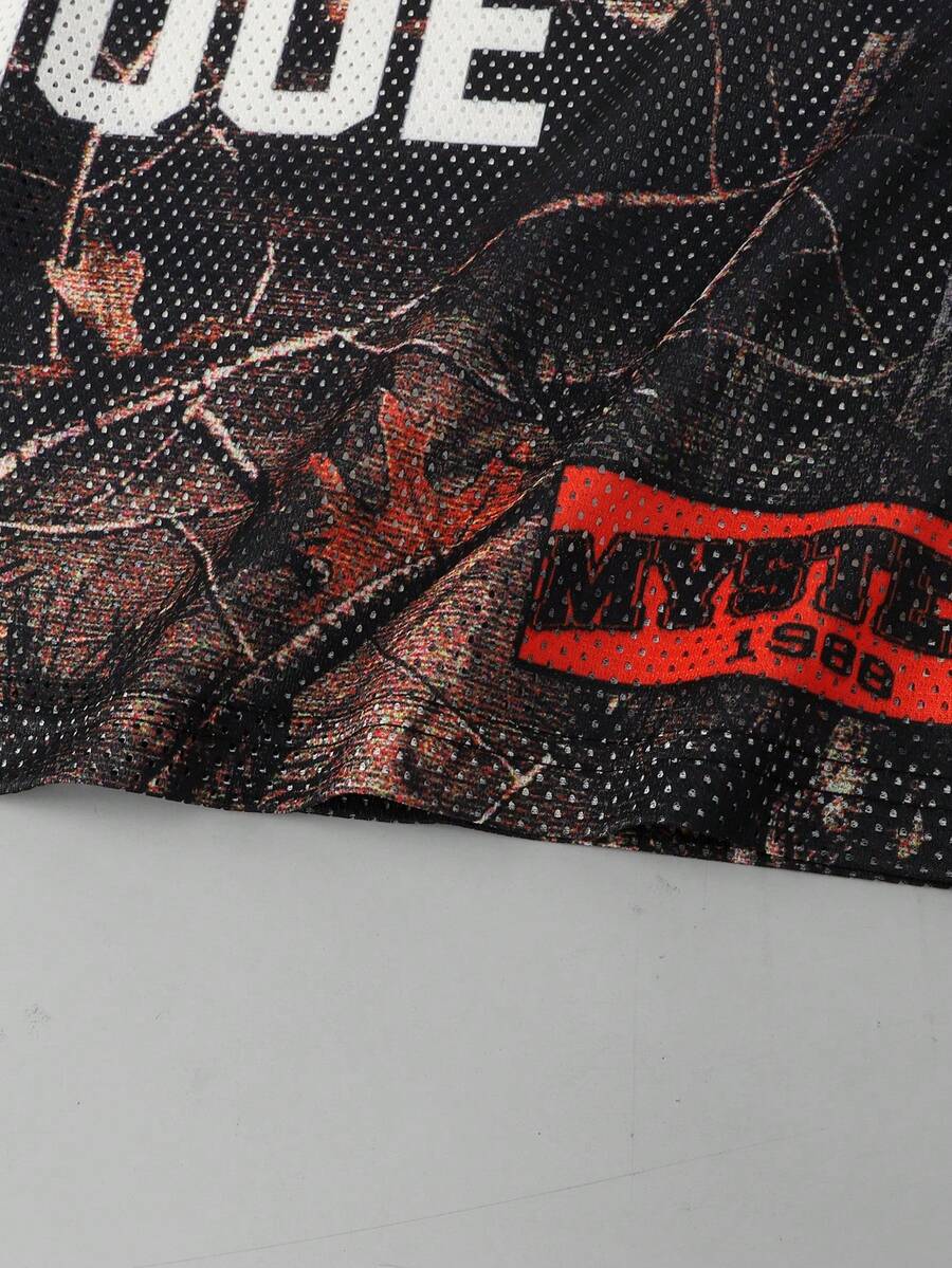 Street Life Men's Dry Wood Branch Camo Print Mesh Splice Short Sleeve Sports T-Shirt