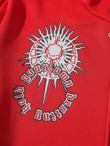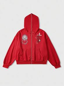 Street Life Men's Eyelet Design Cross Print Zip Front Loose Hoodie Sweatshirt, Fall