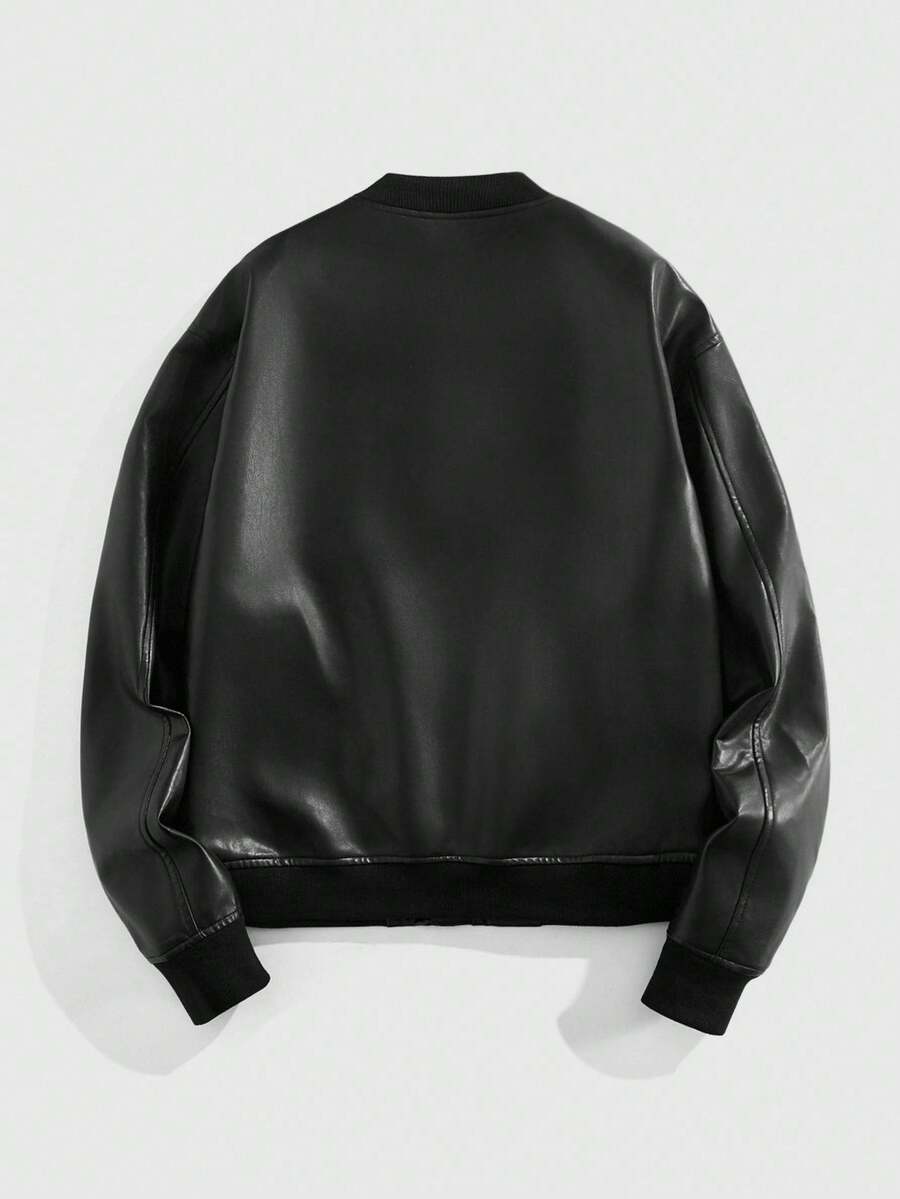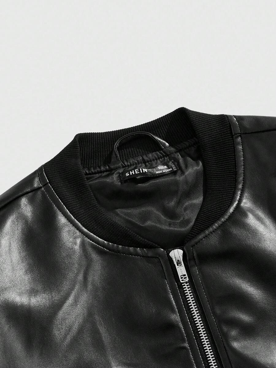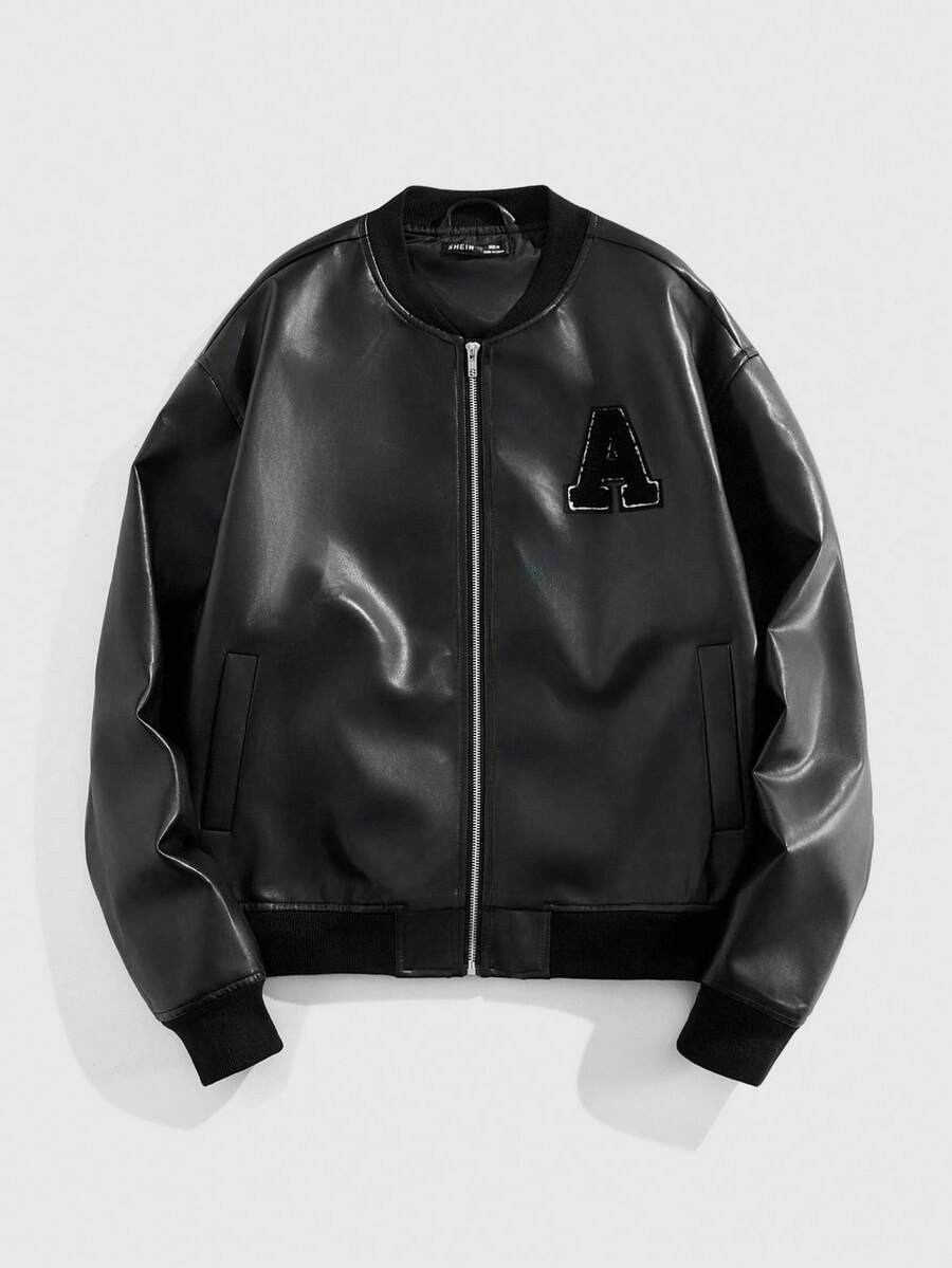 Street Life Men's Fashion Casual PU Applique Zip-Up Jacket, Fall