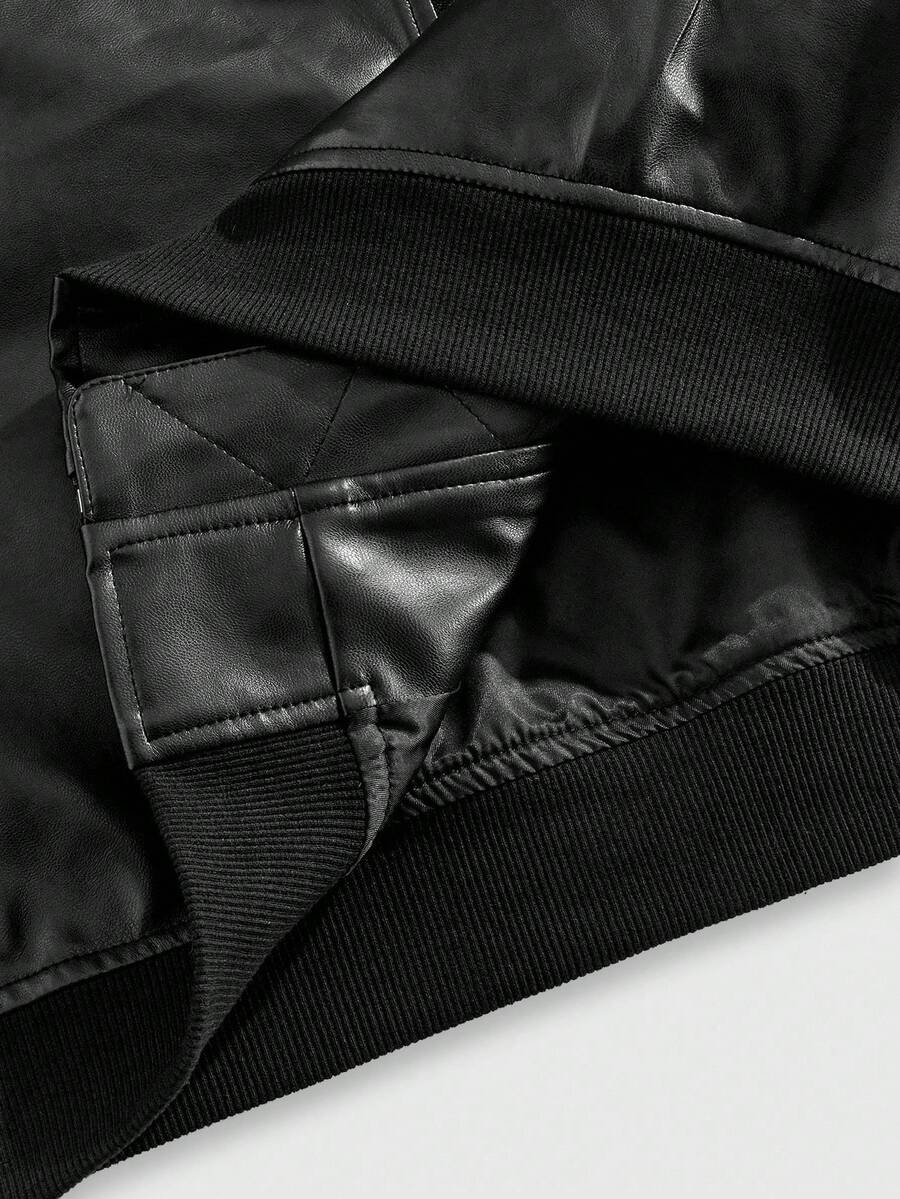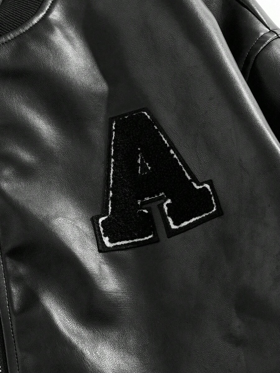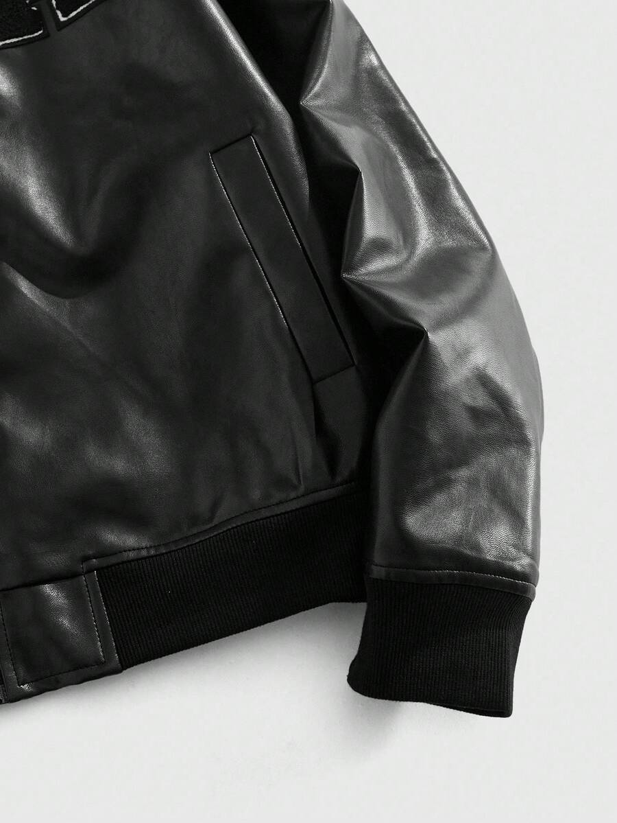 Street Life Men's Fashion Casual PU Applique Zip-Up Jacket, Fall