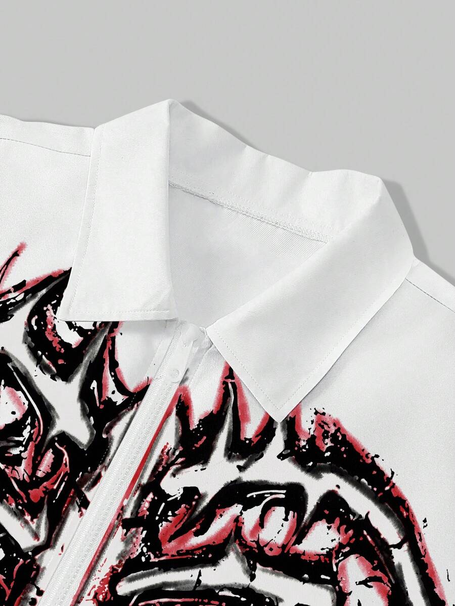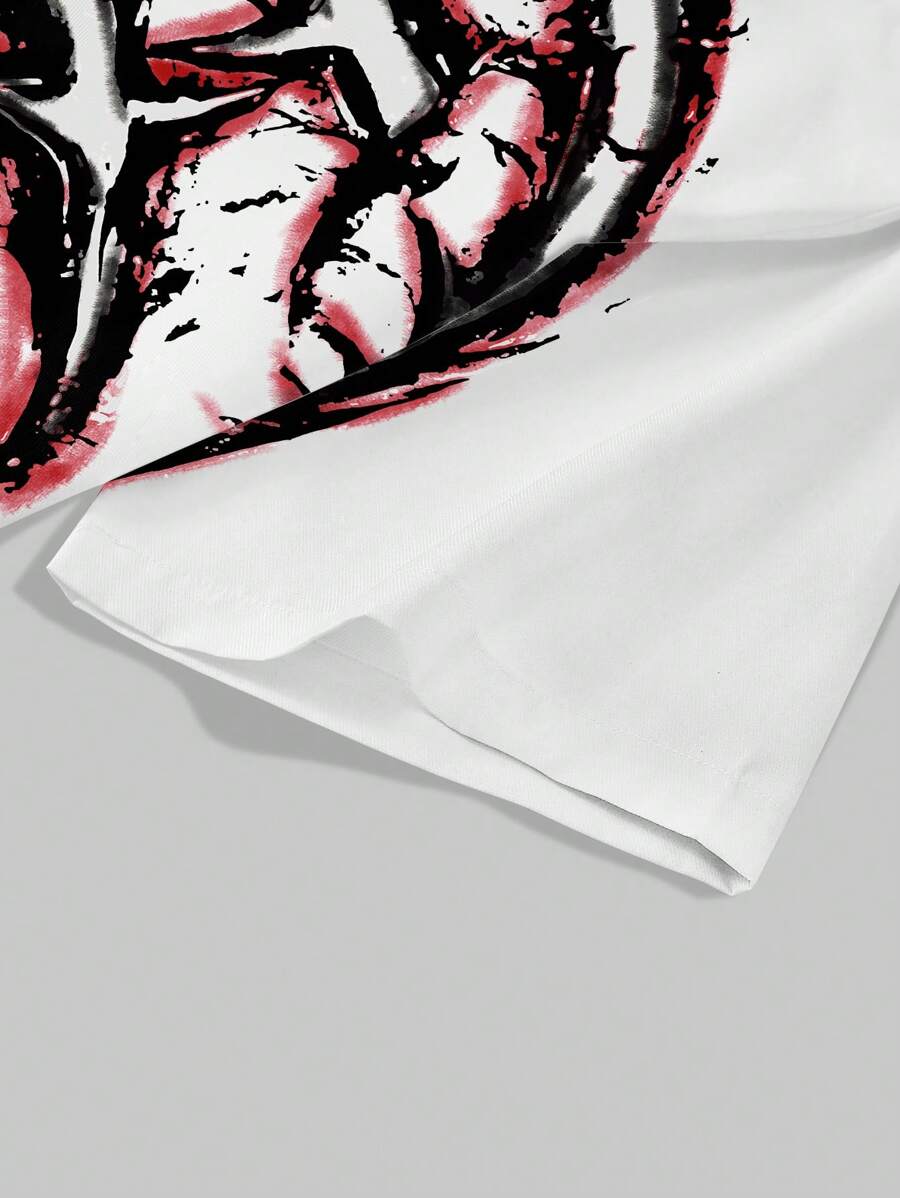 Grunge Punk Men's Fashion Colorblock Printed Short Sleeve Shirt, Summer