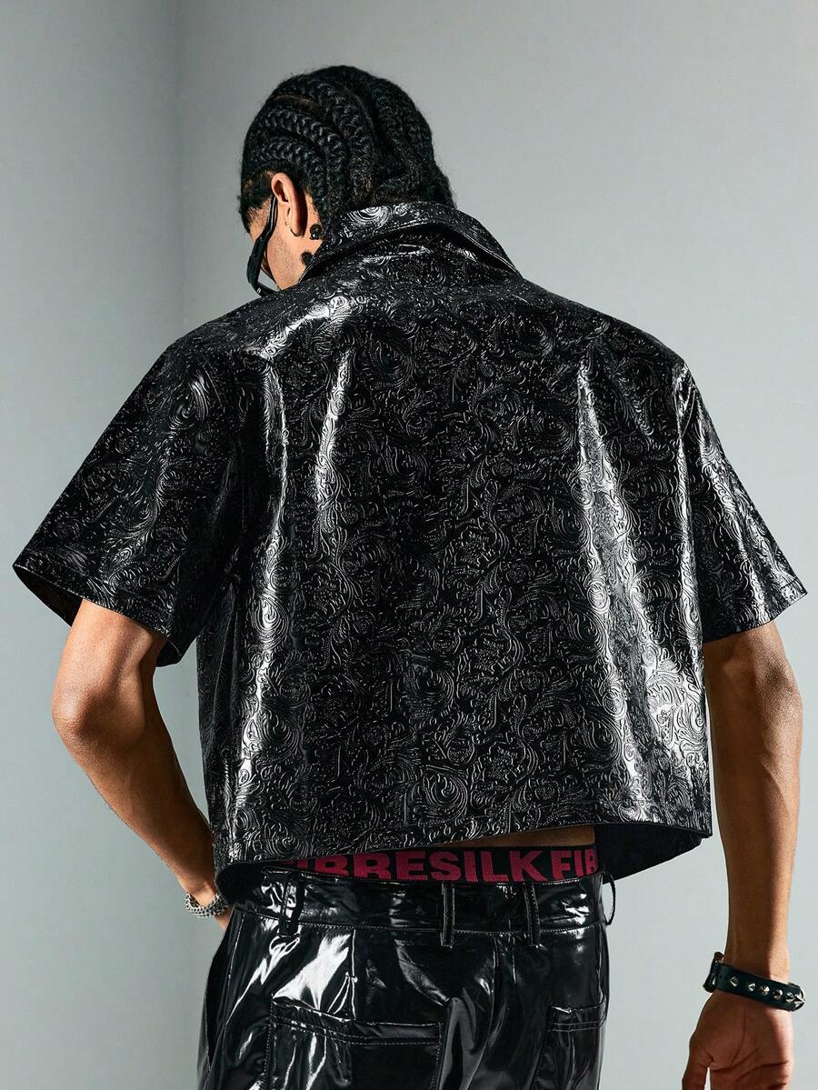 Street Life Men's Fashion PU Texture Zipper Short Sleeve Shirt
