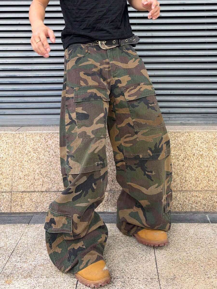 Street Life Spring Casual Camo Men'S Fashionable Vintage Camouflage Curved Blade Cargo Jeans