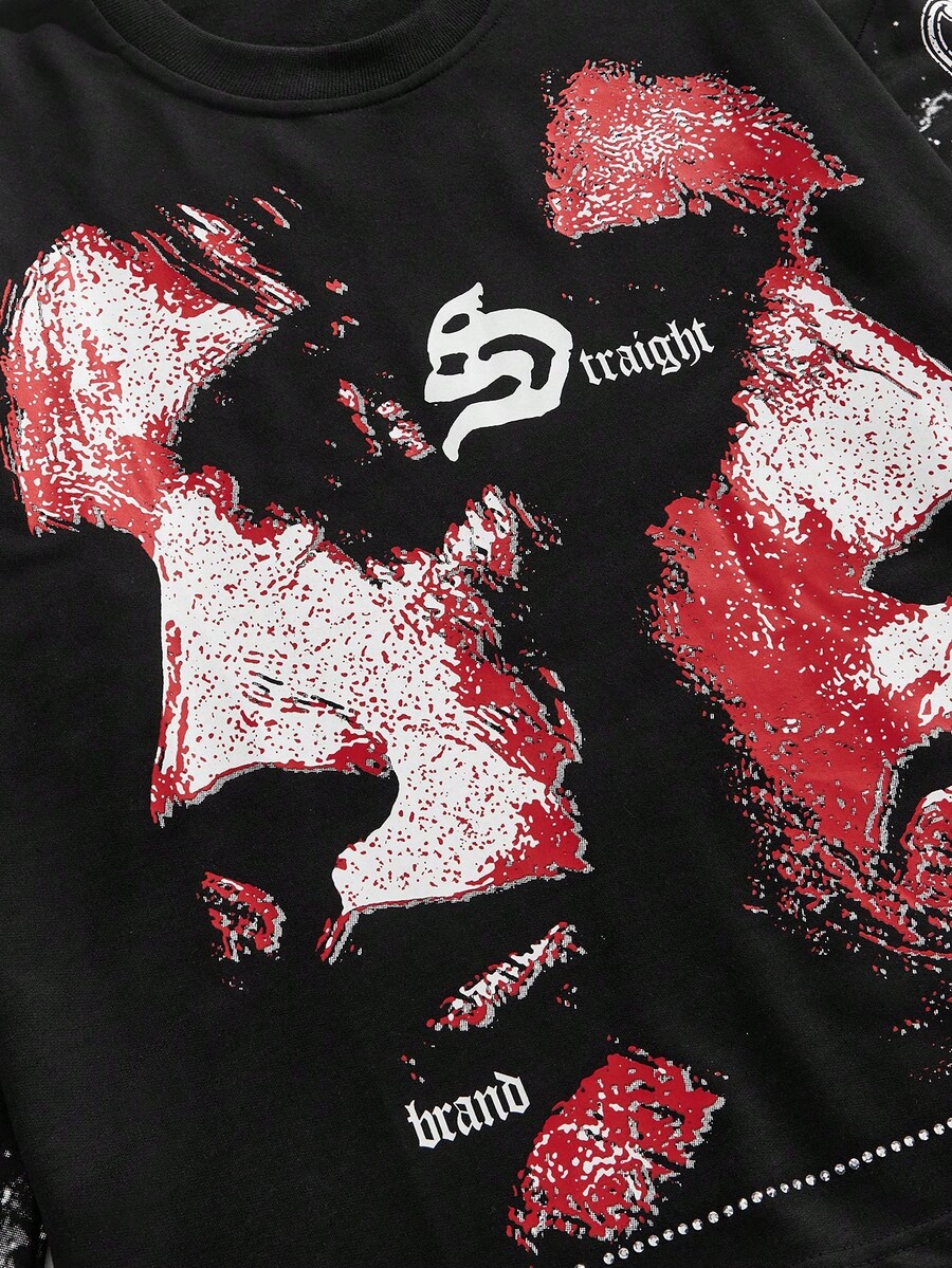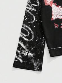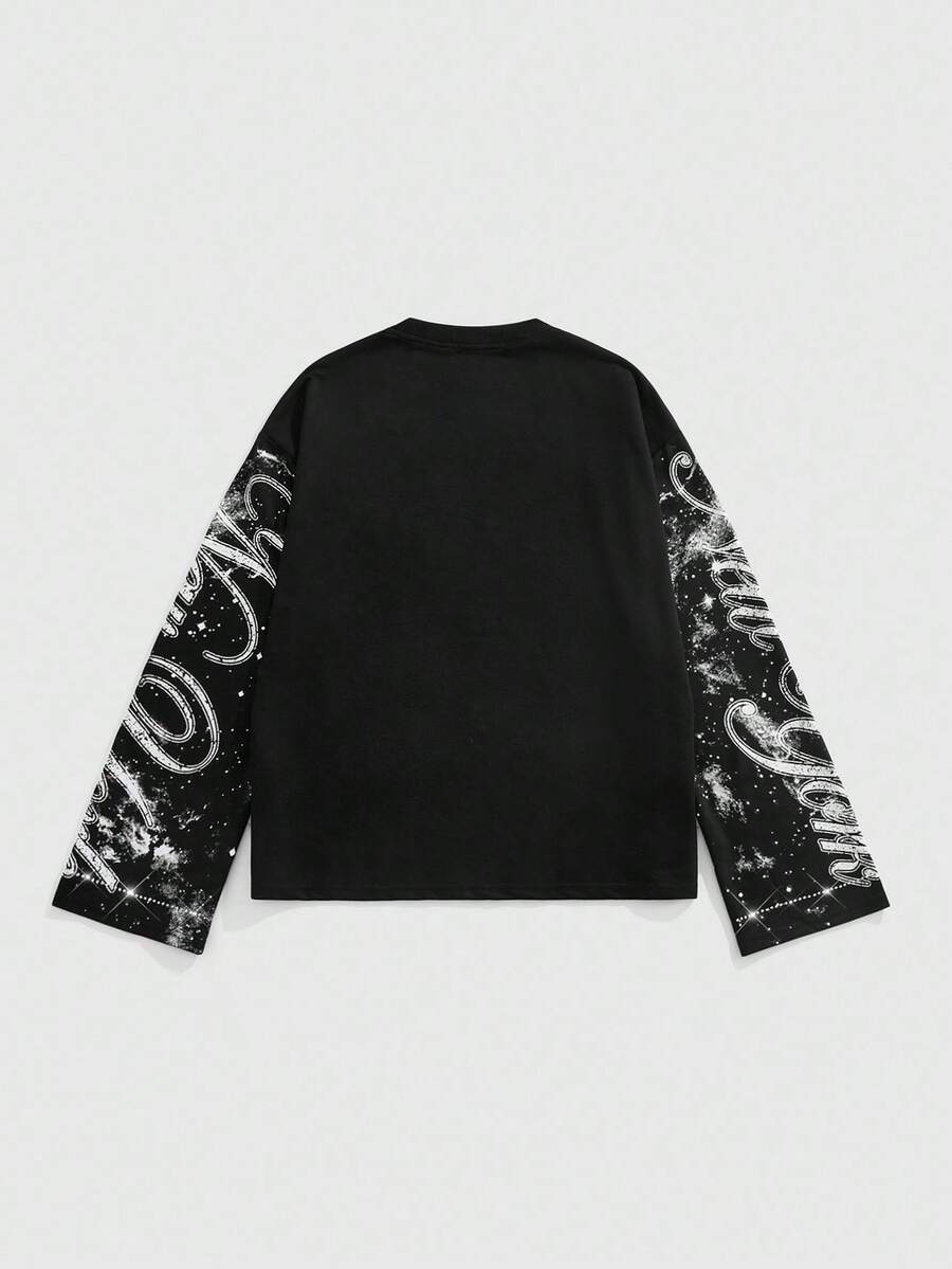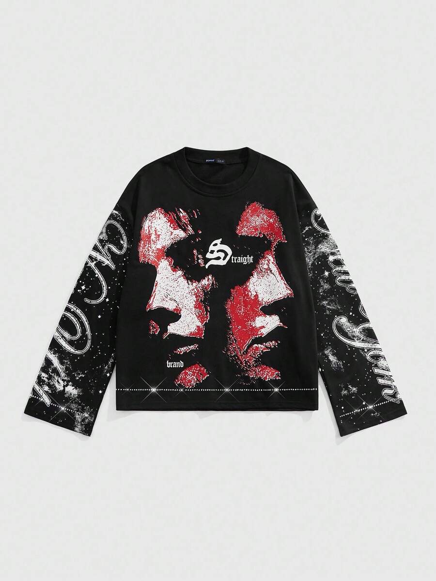Street Life Men's Figure Graphic Crew Neck Long Sleeve T-Shirt, For Fall, 2000s Style