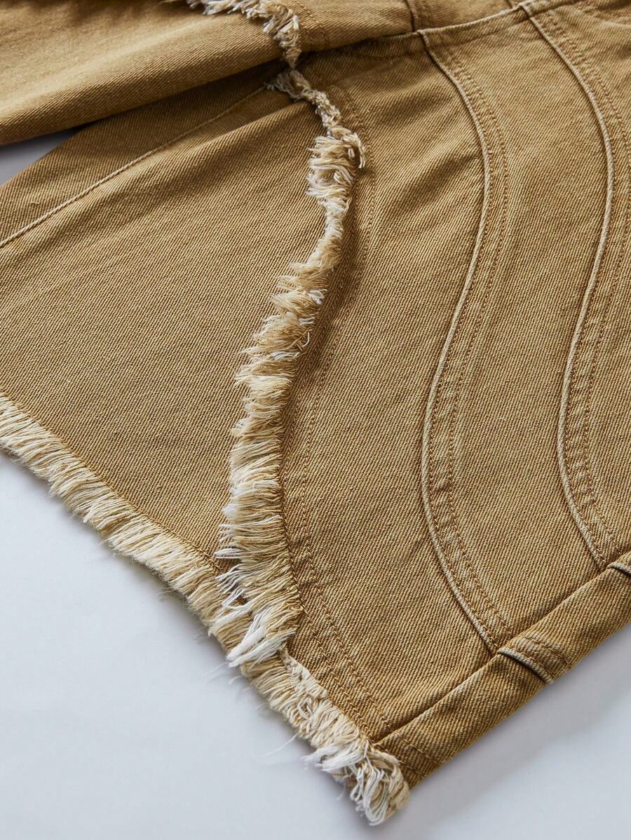 Street Life Men's Front Button Pockets Raw Edge Simple Casual Denim Shorts