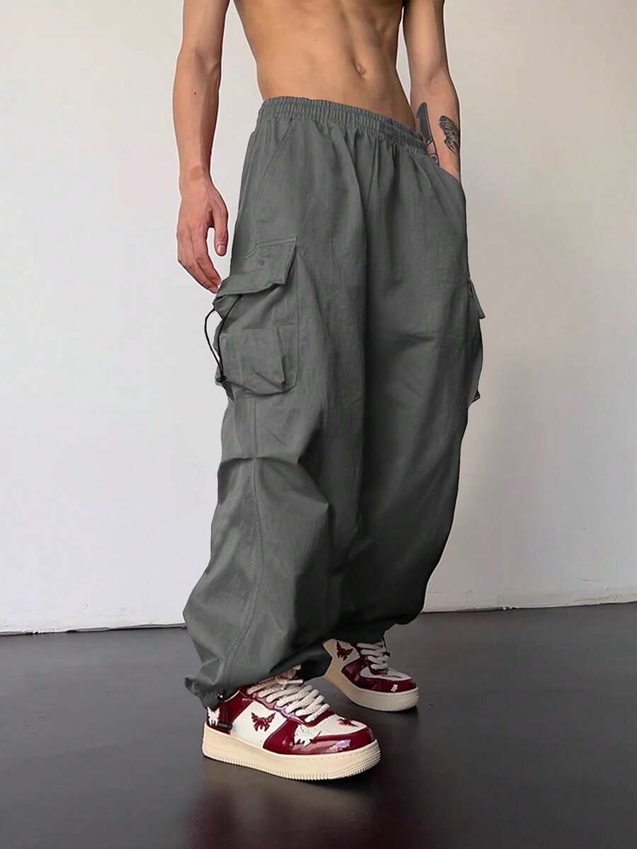 Street Life Men's Front Lace-Up Pocket Casual Loose Cargo Pants, Everyday Wear