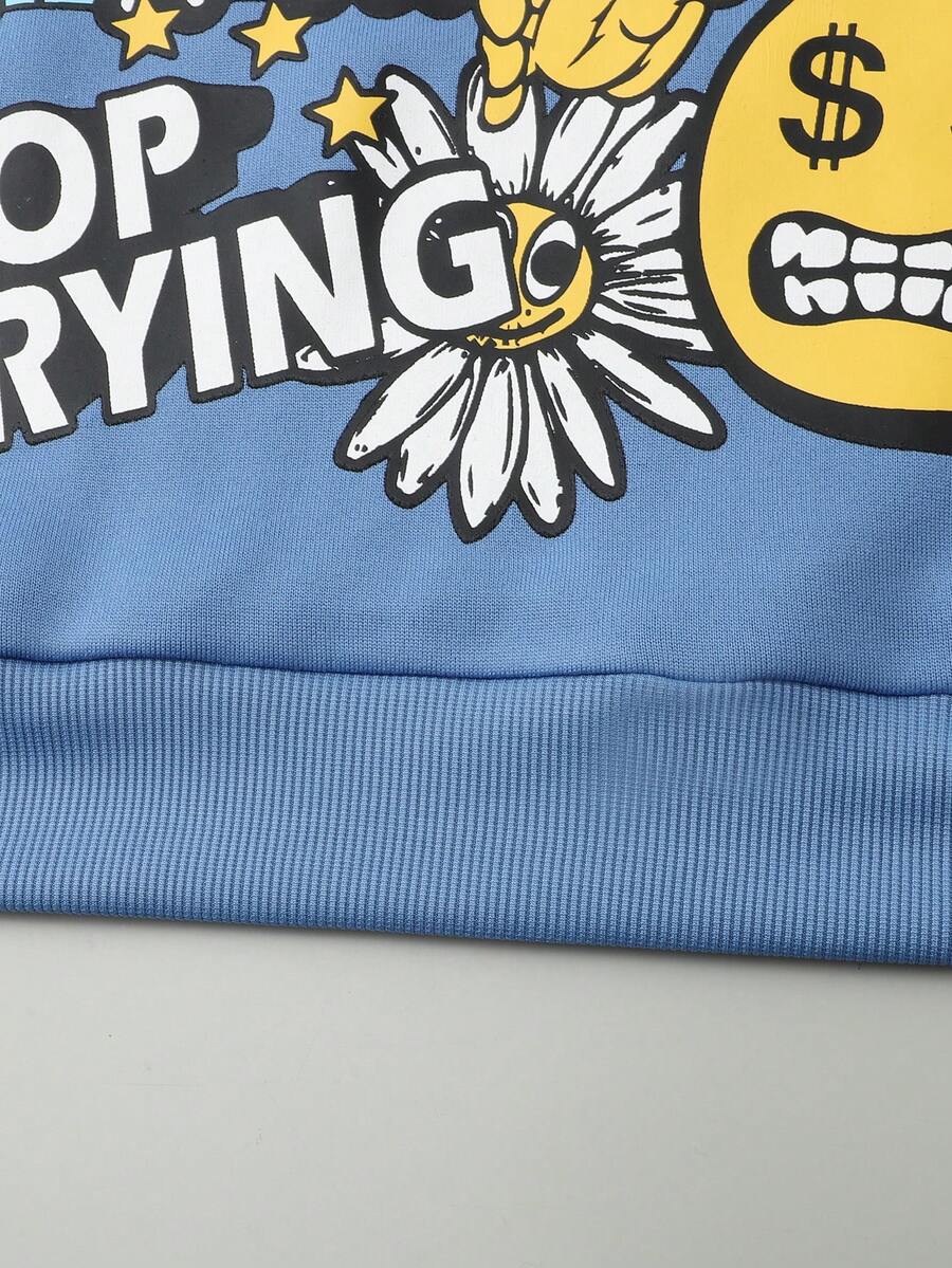 Street Life Men's Funny Cartoon Portrait Loose Short Hoodie