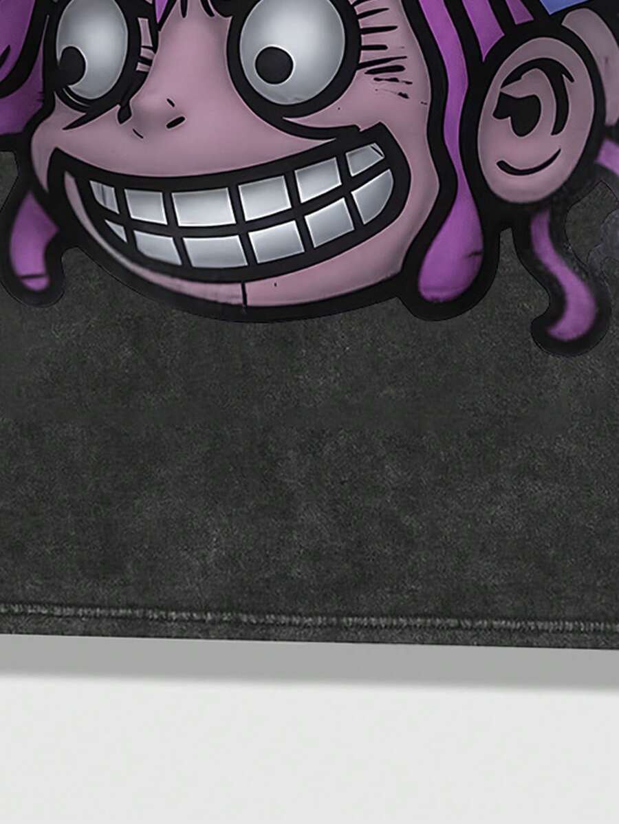 Street Life Men's Funny Graffiti Portrait Print Washed Short Sleeve T-Shirt, Summer