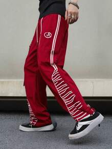 Street Life Men's Geometric Print Cargo Pocket Drawstring Waist Loose Casual Pants