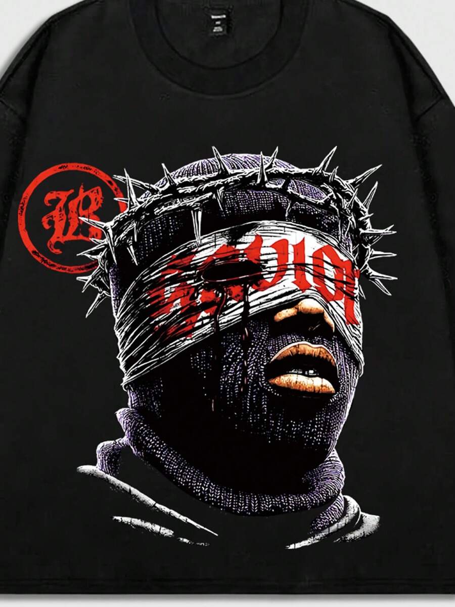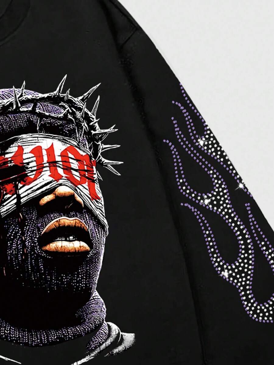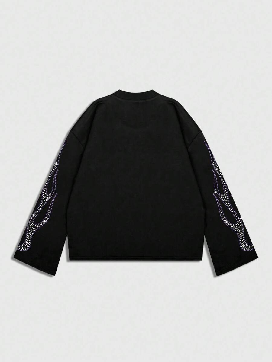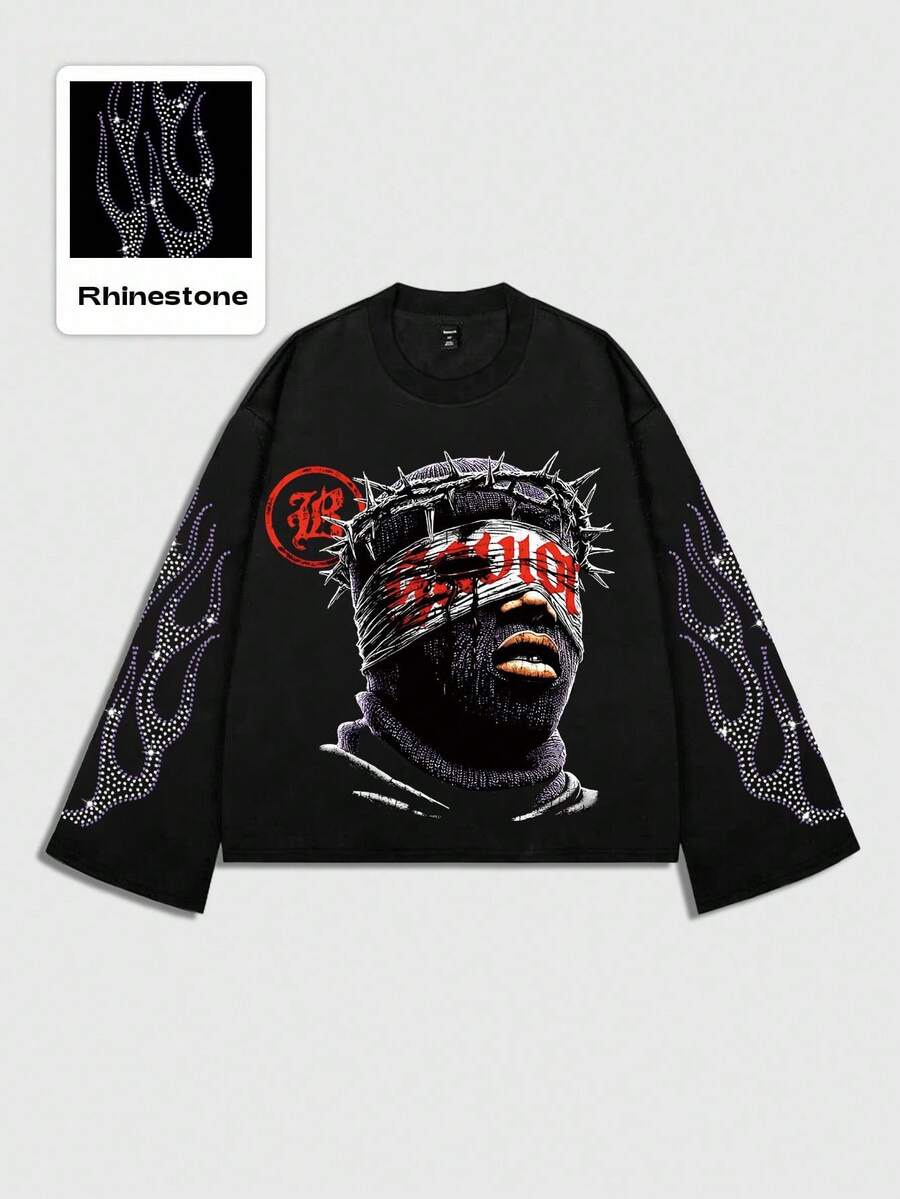 Street Life Men's Glitter Diamond Print Long Sleeve T-Shirt, Loose Cropped Fit, For Fall