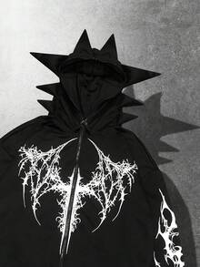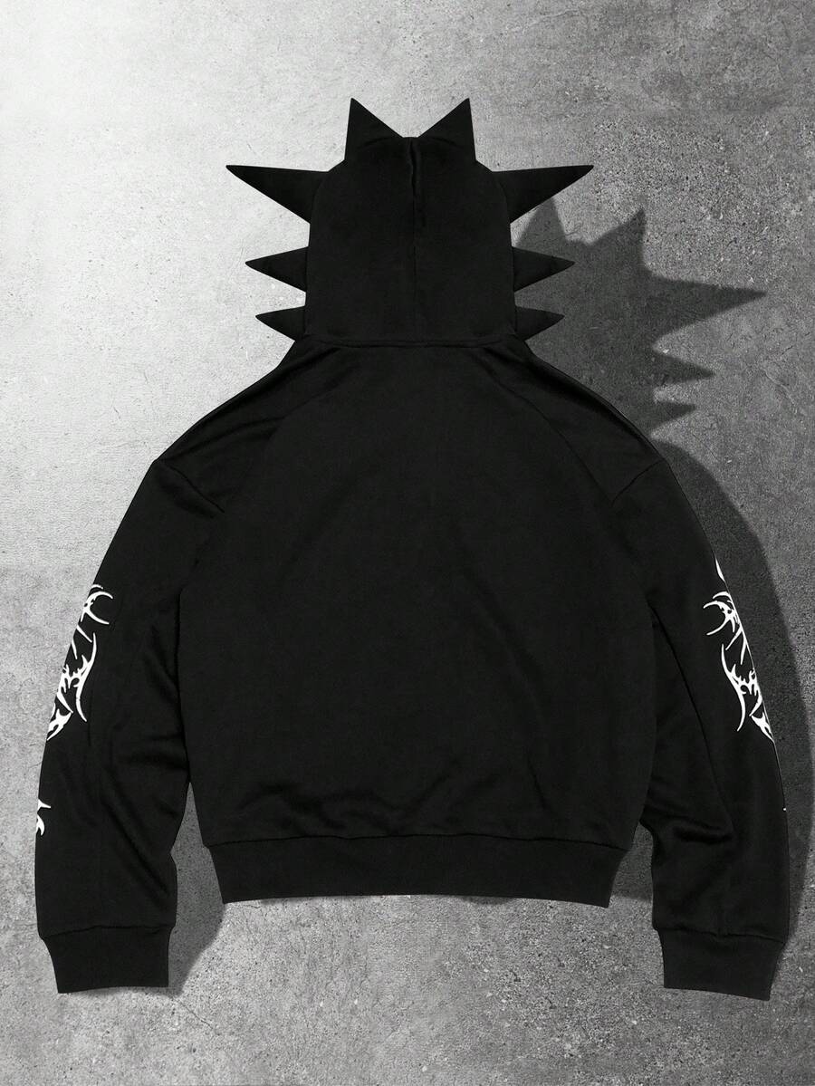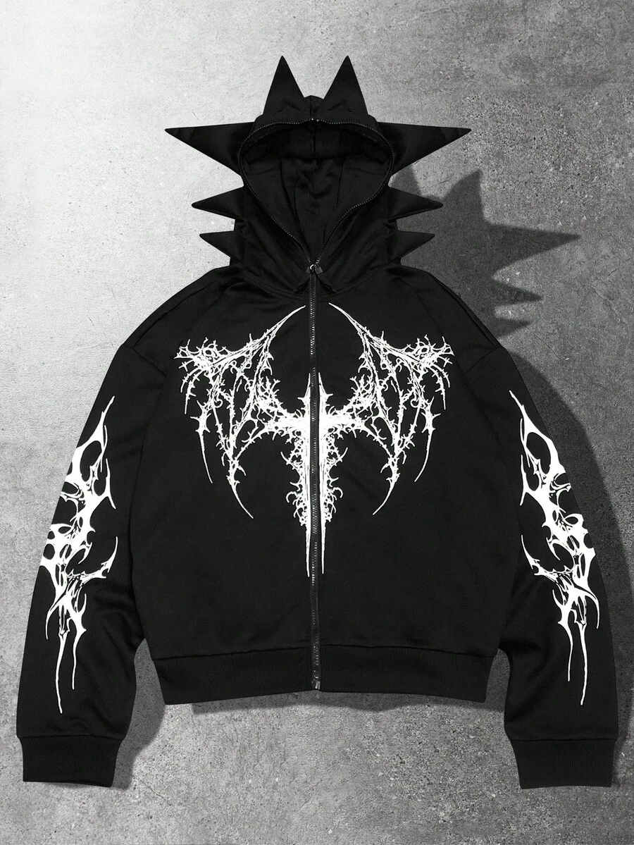 Street Life Men's Gothic Antenna Print Zip Front Hoodie, Loose Fit