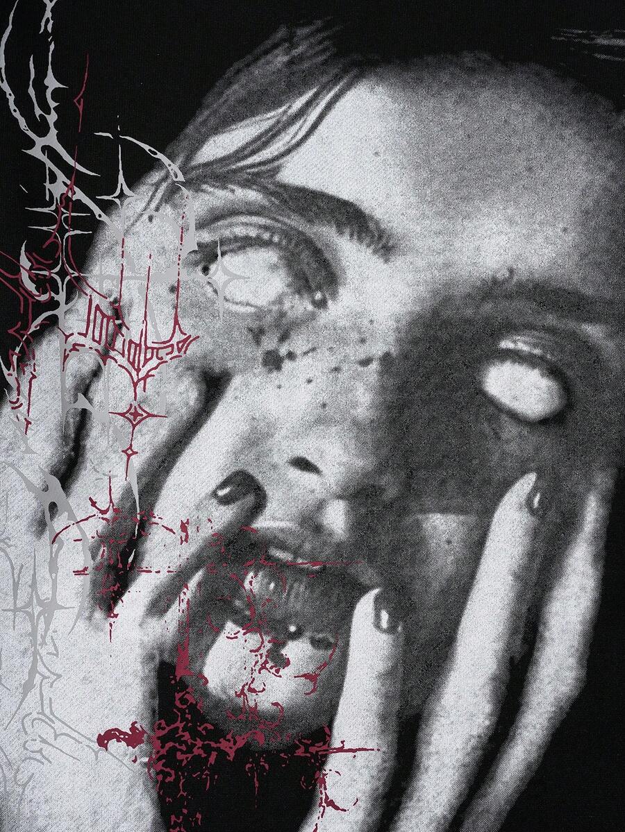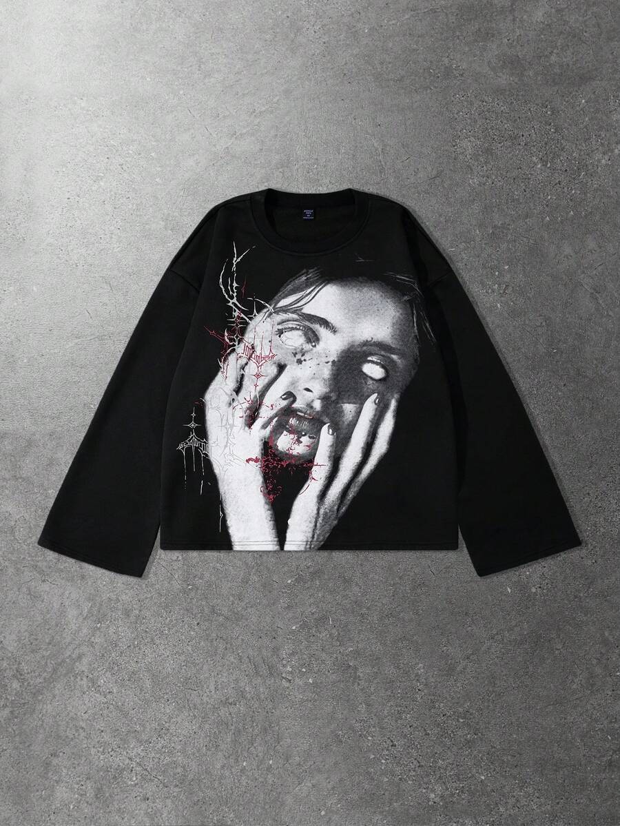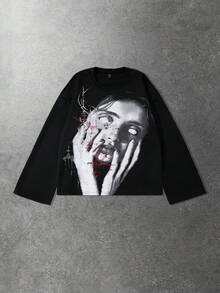 Street Life Men's Gothic Style Graphic Print Crew Neck Casual Long Sleeve T-Shirt, Autumn/Winter