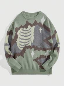 Street Life Men's Graphic Pattern Crew Neck Long Sleeve Casual Sweater For Daily Wear, School