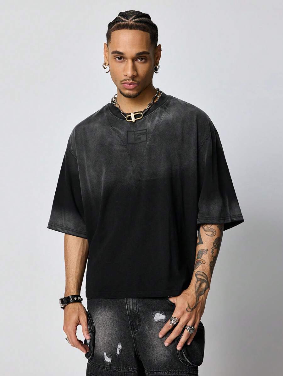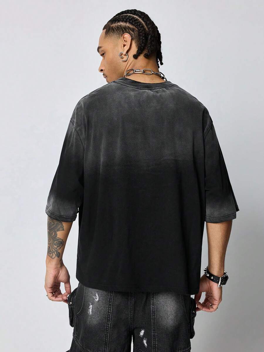 Street Life Men's Grunge Bleached Splattered Graphic Short Sleeve T-Shirt, Loose And Cropped