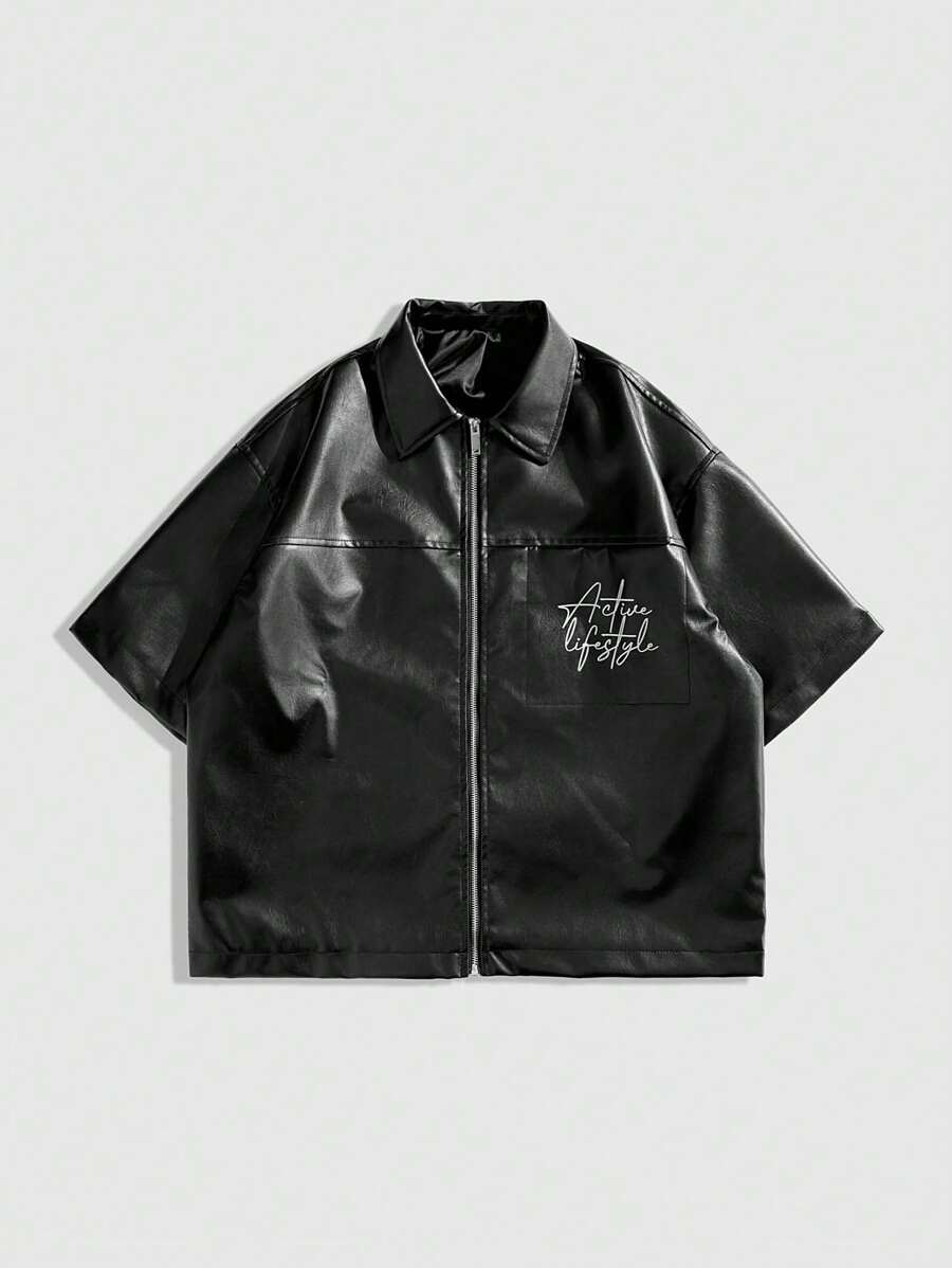 Street Life Men's Hip Hop Figure PU Fashionable Figure & Letter Print Short Sleeve Shirt