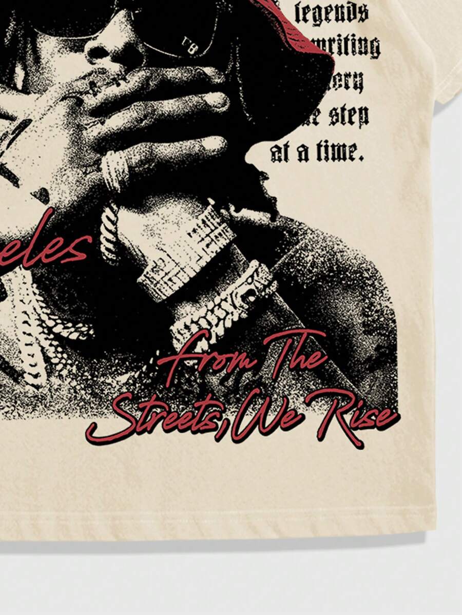 Street Life Men's Hip Hop Figure Printed Short Sleeve T-Shirt, Suitable For Spring/Summer