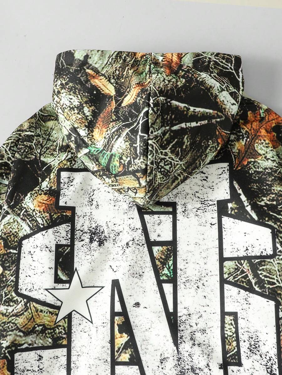 Street Life Men's Jersey Loose Fit Hoodie With Branch & Camouflage Pattern, Streetwear