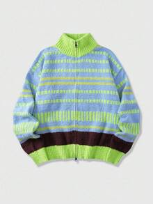 Street Life Men's KPOP Casual Colorblock Striped Jacquard Cardigan, Autumn/Winter